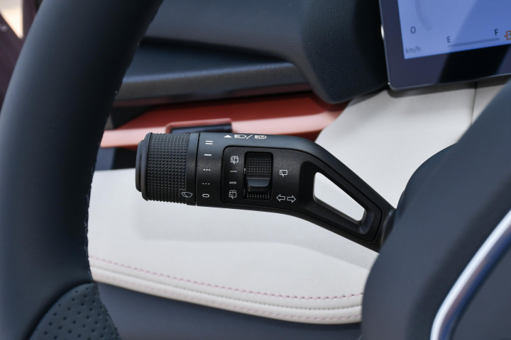 本次实测车型的主打色是森珀绿,也是这款车的标志性配色之一。灵感源自热带雨林的苔藓,车漆带着淡淡的琥珀光泽,采用哑光工艺打造,质感和常见的金属漆、珠光漆有明显区别。晴天阳光下,哑光质感能避免强光反射带来的刺眼感,光线柔和地附着在车身上,呈现出自然通透的色泽;阴天时,颜色也不会显得沉闷暗沉,反而透着一种低调的高级感。据了解,这款车漆的调配需要经过多道工序,反复调试光泽度和饱和度,才能达到这种兼顾辨识度与耐脏性的效果。